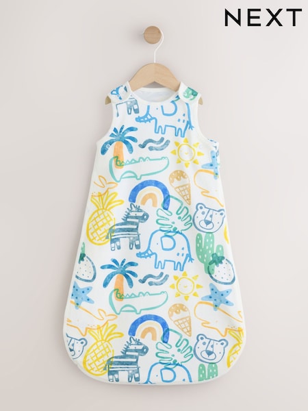 Blue Bright Safari Animals 0.5 Tog Sleeveless Baby Sleep Bag