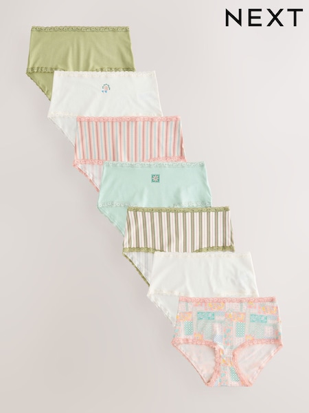 Pink/Green Midi Cotton and Lace Knickers 7 Pack