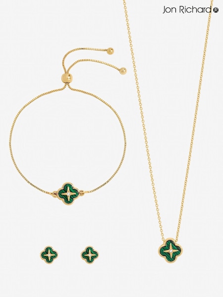 Jon Richard Gold Tone Malachite Clover Trio Set Gift Box