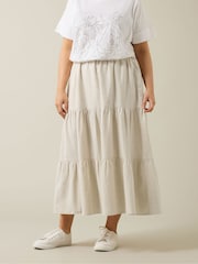 Fit & Fashion Notes:Compose your linen look book with this tiered skirt. Crafted from a lightweight linen-blend fabric, this skirt seamlessly blends comfort and style. It features an elasticated waistband and completes at a maxi lenght. Pair with a shirt and sandals for a classic look that you can feel confident in. Why We Love It:Ideal to complete your summer essentials.Model is 5'10.5/178cm and size UK 16/EU 44 Machine washable. 55% Viscose, 30% Cotton, 15% Linen.