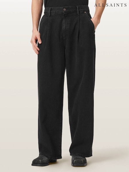 Calça jeans AllSaints Lenny preta, wide, straight leg